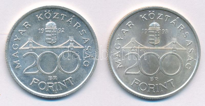 1992. 200Ft Ag "MNB" + 1993. 200Ft Ag "MNB" T:AU