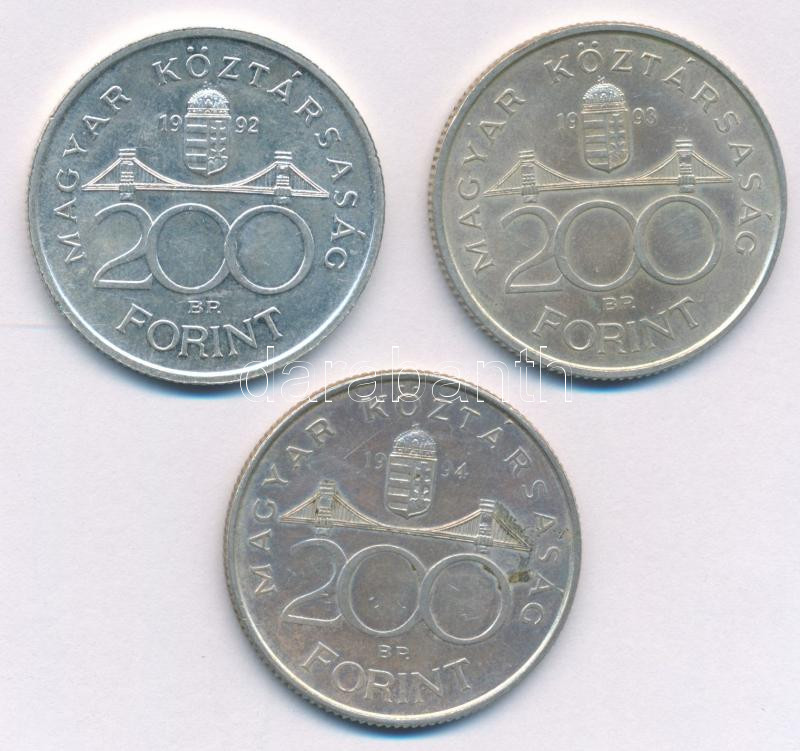 Beschreibung: 1992. 200Ft Ag "MNB " + 1993. 200Ft Ag "MNB " + 1994. 200Ft Ag "Deák " T:AU,XF