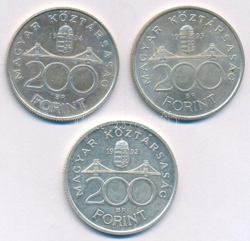 Beschreibung: 1992. 200Ft Ag "MNB " + 1993. 200Ft Ag "MNB " + 1994. 200Ft Ag "Deák " T:AU,XF