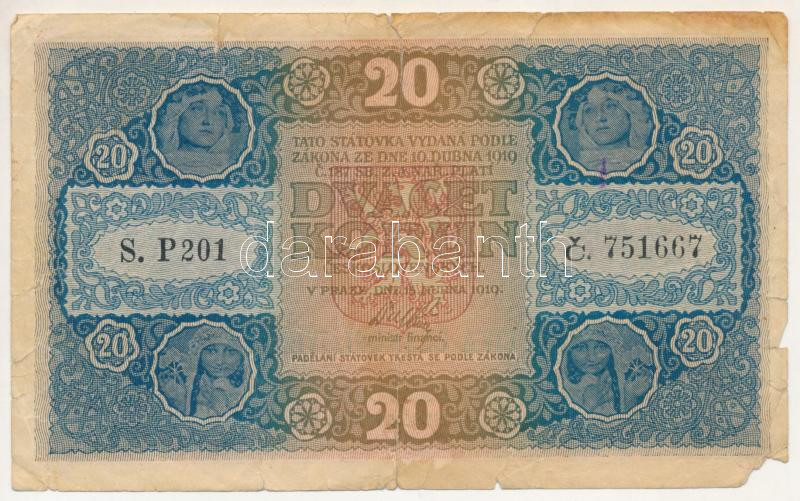 Czechoslovakia 1919. 20 Korun "P201 751167" C:VG