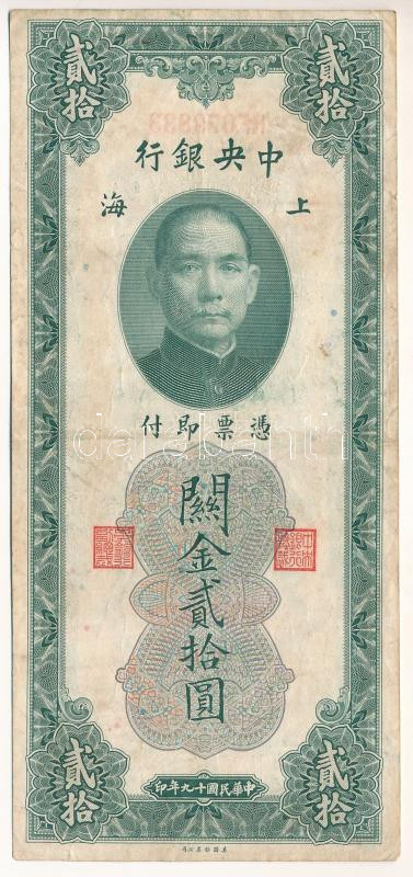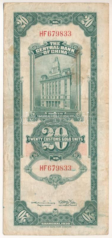 Kína 1930. 20CGU T:F China 1930. 20 Custons Gold Units C:F Krause P#32... https://www.darabanth.com/de/500-Fernauktion/500.0/Numismatik/Weltweit-Banknoten~1500061/Kina-1930-20CGU-TF-China-1930-20-Custons-Gold-Units-CF-Krause-P23328~II3407958