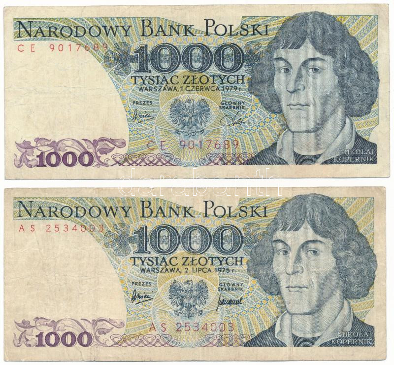 Poland 1975. 1000 Złoty... https://www.darabanth.com/de/500-Fernauktion/500.0/Numismatik/Weltweit-Banknoten~1500061/Lengyelorszag-1975-1000Zl-plus-1979-1000Zl-TF3Cbr-3E-Poland-1975-1000-ZC582otych-plus-1979-1000-ZC582oty~II3410692