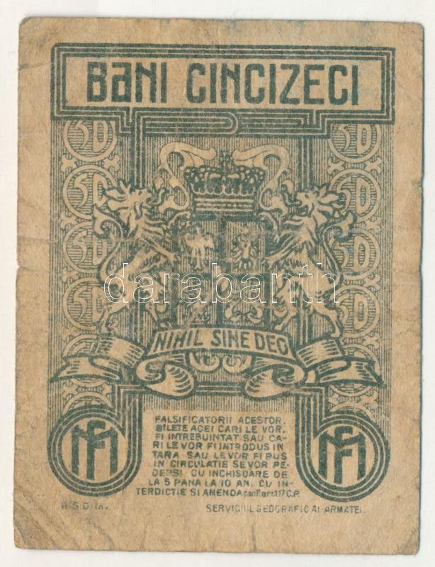 Krause P#71 https://www.darabanth.com/de/500-Fernauktion/500.0/Numismatik/Weltweit-Banknoten~1500061/Romania-1917-50b-TF-VG3Cbr-3E-Romania-1917-50-Bani-CF-VG3Cbr-3E-Krause-P2371~II3402551