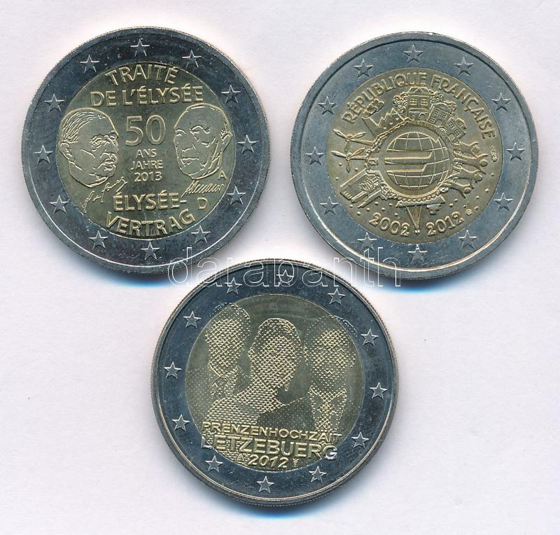 France 2012. 2 Euro "10th anniversary of the Euro" + 2013. 2 Euro "Élysée Treaty" + Luxembourg 2012. 2 Euro "Royal wedding" C:AU