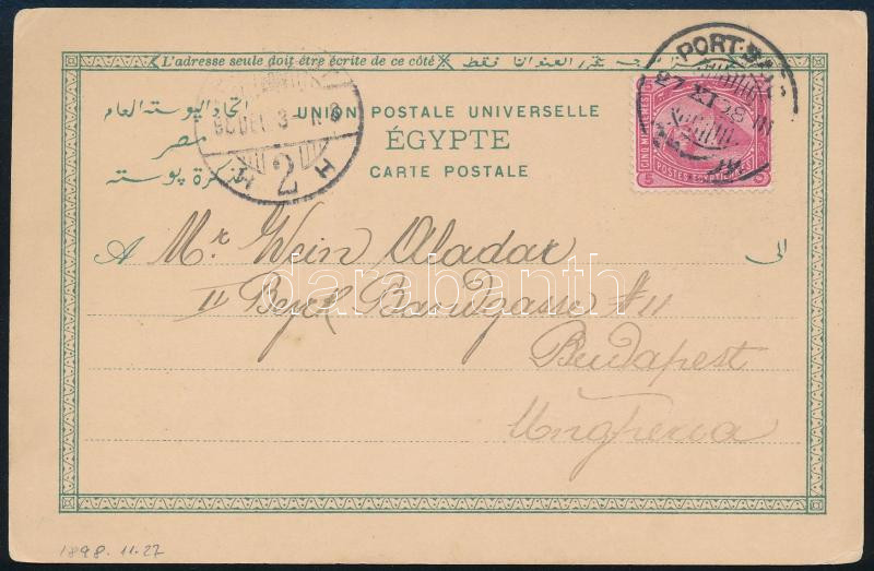 1898 Kairói képeslap "PORT-SAID" - "BUDAPEST" https://www.darabanth.com/de/500-Fernauktion/500.0/Philatelie-und-Postgeschichte-Ausland/Agypten~143/1898-Kairoi-kepeslap-PORT-SAID-BUDAPEST~II3080215