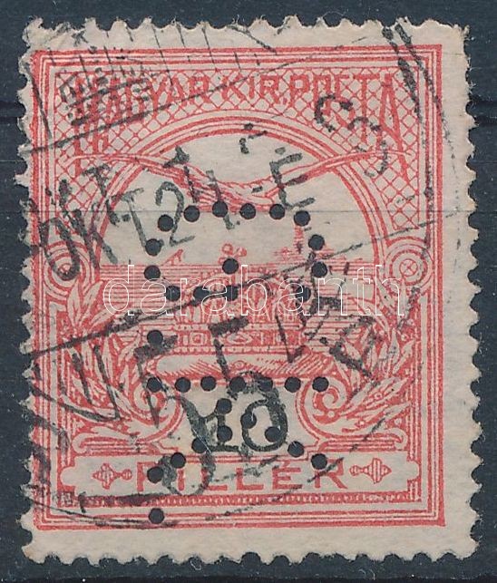 1909 Turul 10f G.K. céglyukasztással / perfin (Lente 300 p) https://www.darabanth.com/de/500-Fernauktion/500.0/Philatelie-und-Postgeschichte-Ungarn/Ausgaben-1900-1919~38/1909-Turul-10f-GK-ceglyukasztassal-perfin-Lente-300-p~II2138239