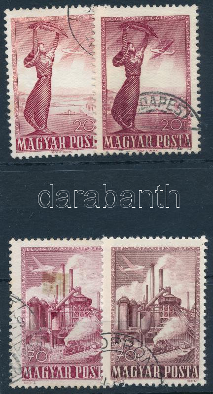1950 Repülő (V.) 2 értéke eltérő színekben https://www.darabanth.com/de/500-Fernauktion/500.0/Philatelie-und-Postgeschichte-Ungarn/Ausgaben-1946-1956~58/1950-Repulo-V-2-erteke-eltero-szinekben~II2838978