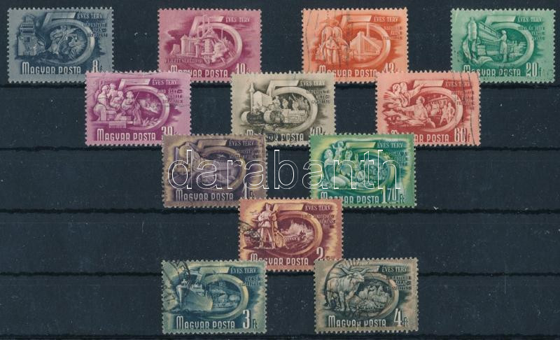 Beschreibung: 1951/1953 Ötéves terv II. 12 klf értéke számvízjellel