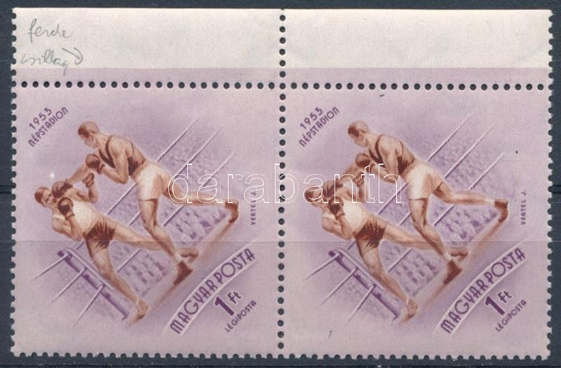 1953 Népstadion 1Ft ívszéli pár, benne javítás után ferde csillag a ví... https://www.darabanth.com/de/500-Fernauktion/500.0/Philatelie-und-Postgeschichte-Ungarn/Ausgaben-1946-1956~58/1953-Nepstadion-1Ft-ivszeli-par-benne-javitas-utan-ferde-csillag-a-vizjelben~II3403291