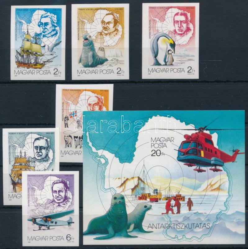 1987 Antarktisz kutatás vágott sor és vágott blokk https://www.darabanth.com/de/500-Fernauktion/500.0/Philatelie-und-Postgeschichte-Ungarn/Ausgaben-1980-1989~62/1987-Antarktisz-kutatas-vagott-sor-es-vagott-blokk~II3407255