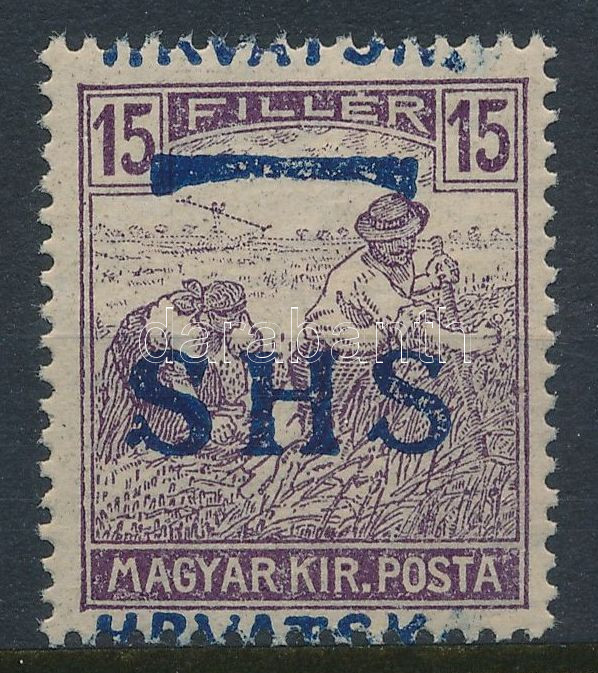 Beschreibung: SHS 1918 Arató 15f látványosan elcsúszott felülnyomással