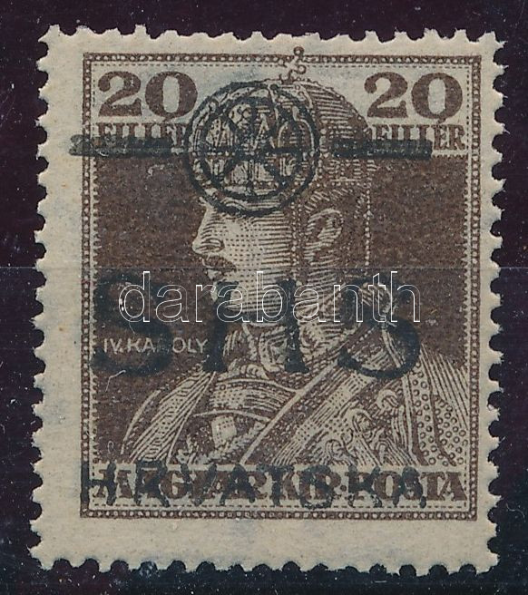 Beschreibung: SHS 1918 Károly 20f, a hátoldalra is került felülnyomás