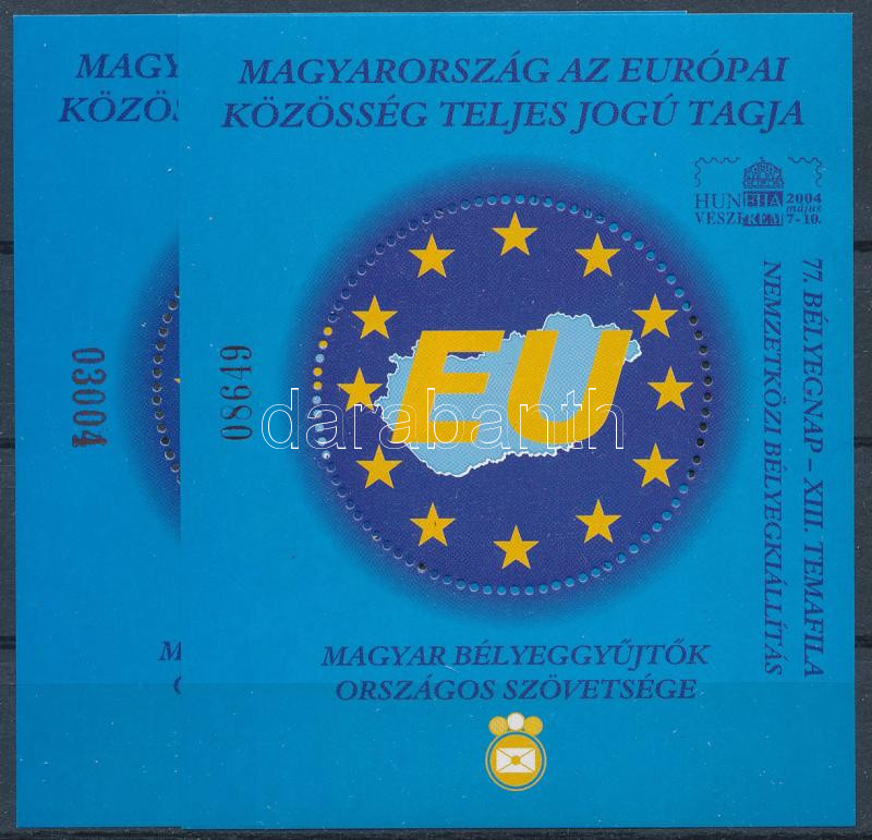 Beschreibung: 2004 EU csatlakozás fogazott emlékív pár fordított állású sorszámmal