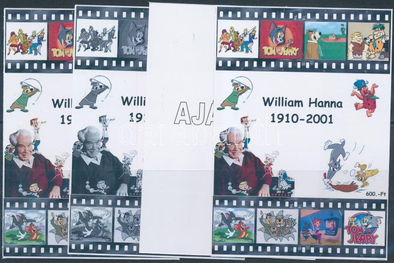 2010/31 William Hanna 4 db-os emlékív garnitúra azonos sorszámmal https://www.darabanth.com/de/500-Fernauktion/500.0/Philatelie-und-Postgeschichte-Ungarn/Gedenkbogen~68/201031-William-Hanna-4-db-os-emlekiv-garnitura-azonos-sorszammal~II3129497