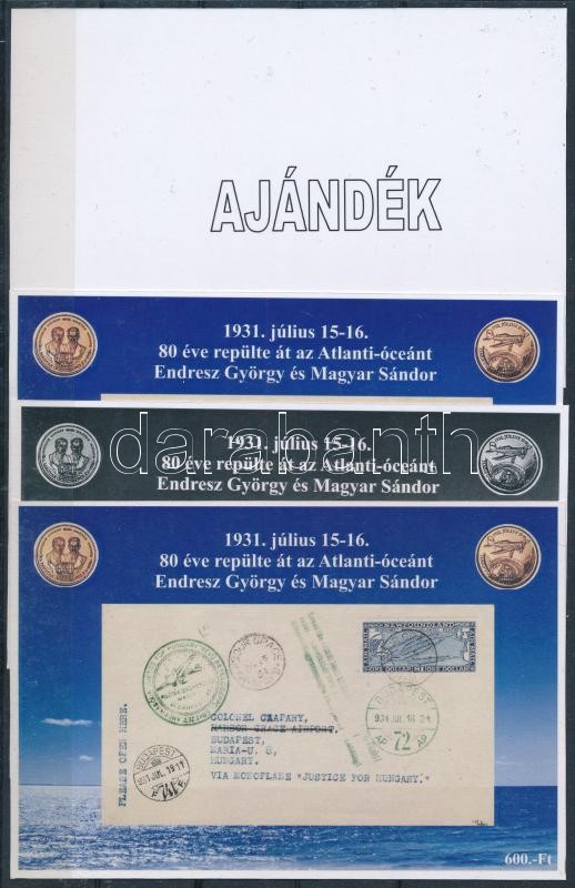 2011/21 Endresz repülés 4 db-os emlékív garnitúra (30.000) https://www.darabanth.com/de/500-Fernauktion/500.0/Philatelie-und-Postgeschichte-Ungarn/Gedenkbogen~68/201121-Endresz-repules-4-db-os-emlekiv-garnitura-30000~II2090222