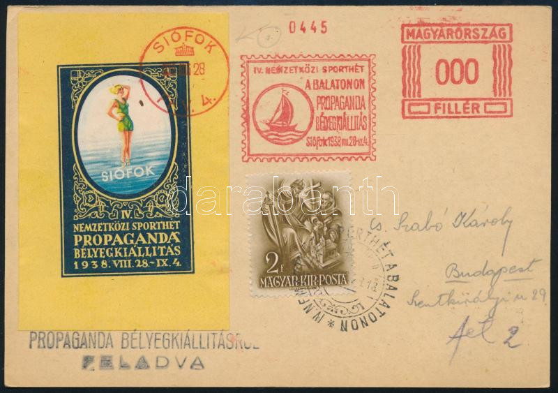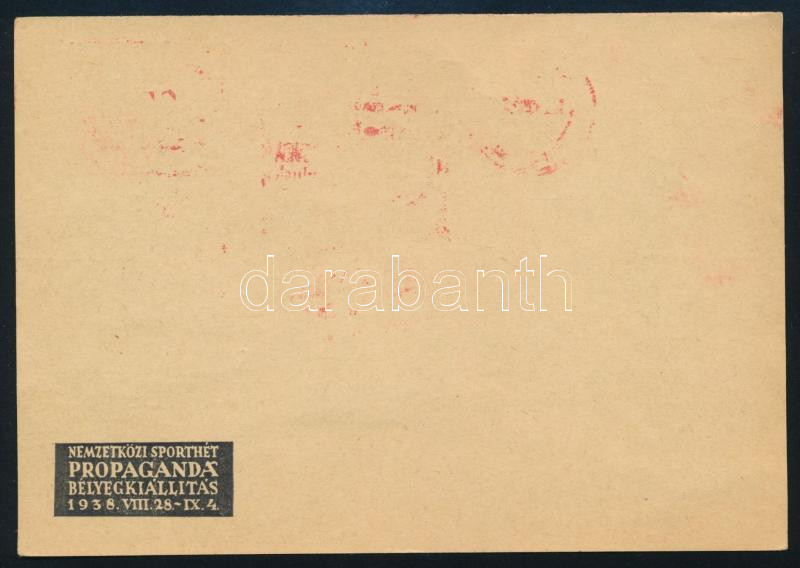 Beschreibung: 1938 Levelezőlap Nemzetközi Sporthét levélzáróval, alkalmi bélyegzéssel