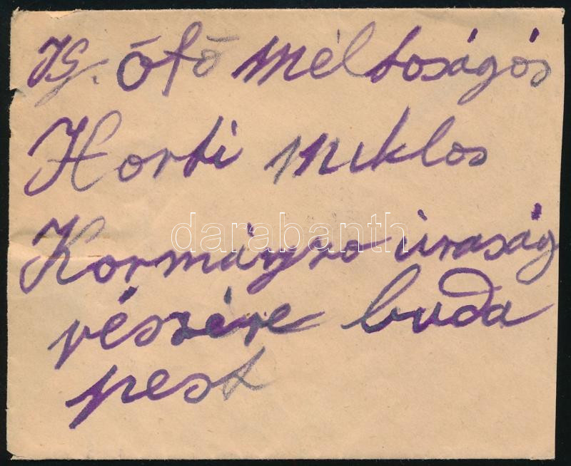 1940 Horthy Miklós kormányzónak címzett levélboríték https://www.darabanth.com/de/500-Fernauktion/500.0/Philatelie-und-Postgeschichte-Ungarn/Pengo-Periode-1926-1944~53/1940-Horthy-Miklos-kormanyzonak-cimzett-levelboritek~II3410953