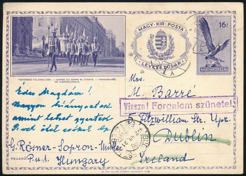 1942 16f díjjegyes levelezőlap Dublinba, "Vissza! Forgalom szünet... https://www.darabanth.com/de/500-Fernauktion/500.0/Philatelie-und-Postgeschichte-Ungarn/Pengo-Periode-1926-1944~53/1942-16f-dijjegyes-levelezolap-Dublinba-Vissza-Forgalom-szunetel~II3409681