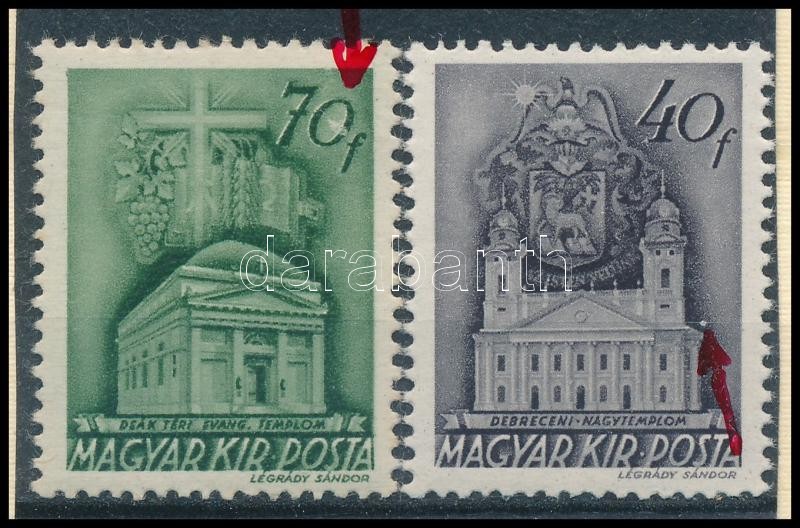 Beschreibung: 1943 Templom III. 70 f és 40 f értékek poloska folt lemezhibával