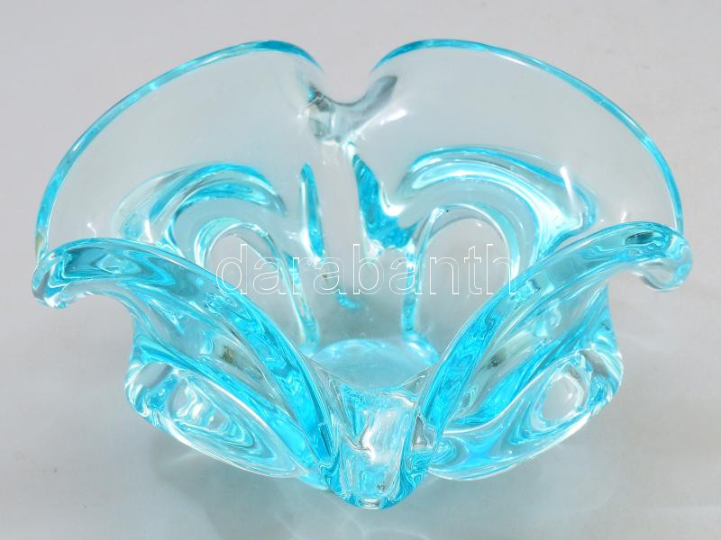 Cseh türkizszínű asztaldísz, jelzés nélkül, karcokkal, 16x16x9 cm https://www.darabanth.com/de/500-Fernauktion/500.0/Porzellan-Keramik-Glass/Glaser~500003/Cseh-turkizszinu-asztaldisz-jelzes-nelkul-karcokkal-16x16x9-cm~II3406019