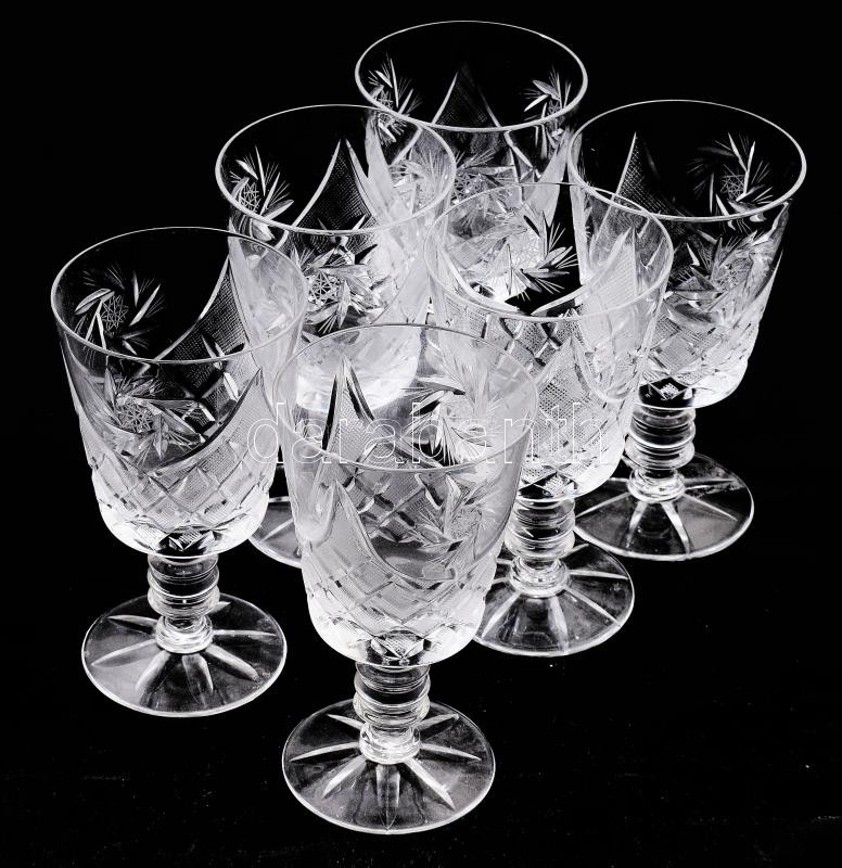 Beschreibung: Csiszolt mintával 6 darabos kristály pohár garnitúra, hibátlan, m: 13,5 cm