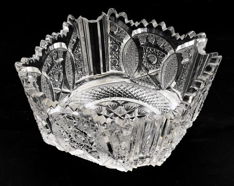 Díszes ólomkristály kínáló, kis pattogzással, 20x20x11 cm https://www.darabanth.com/de/500-Fernauktion/500.0/Porzellan-Keramik-Glass/Glaser~500003/Diszes-olomkristaly-kinalo-kis-pattogzassal-20x20x11-cm~II3405928