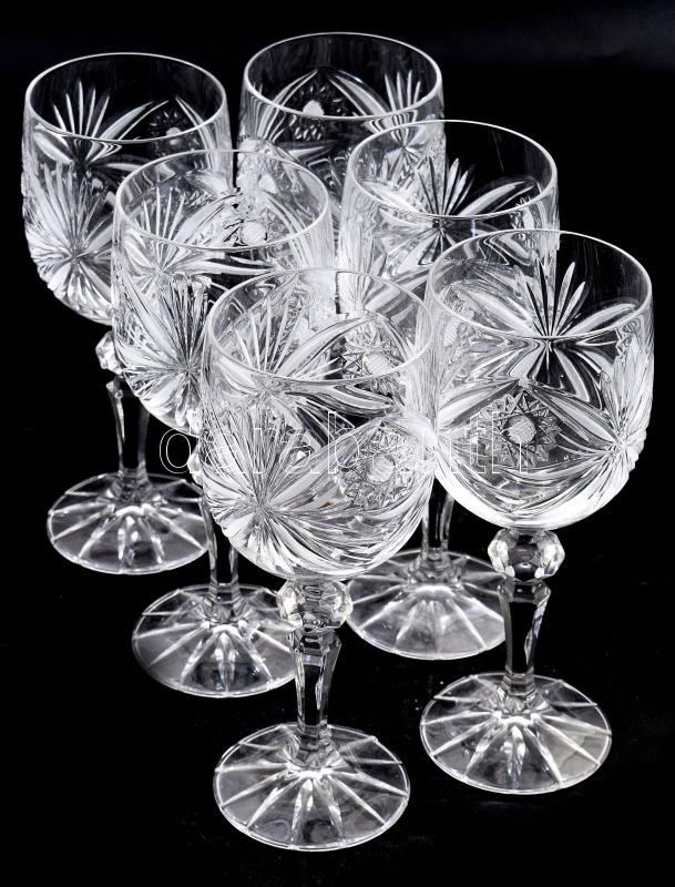 Beschreibung: Kristály talpas italos pohár szett, csiszolt mintával, 6 darab, hibátlan, m: 18 cm