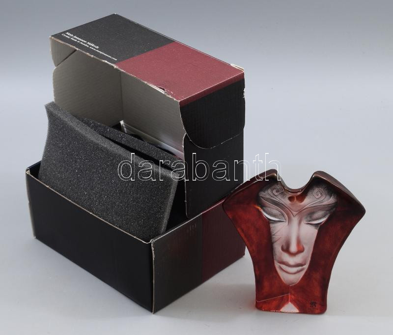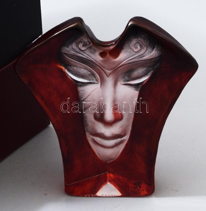 Beschreibung: Mats Jonasson (svéd, 1945-): Ólomkristály asztaldísz a Maszk sorozatból, színezett, címkével és gravírozva jelzett, hibátlan, 14x12 cm, dobozában.