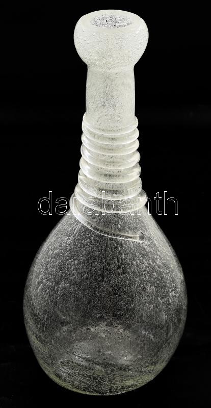 Beschreibung: Murano anyagában buborékos váza, melegen rácsavart üvegszál díszítéssel, m: 36 cm