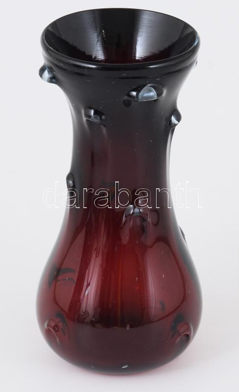 Beschreibung: Rubinszínű szakított üveg bütykös váza, jelzett, hibátlan, m: 22 cm