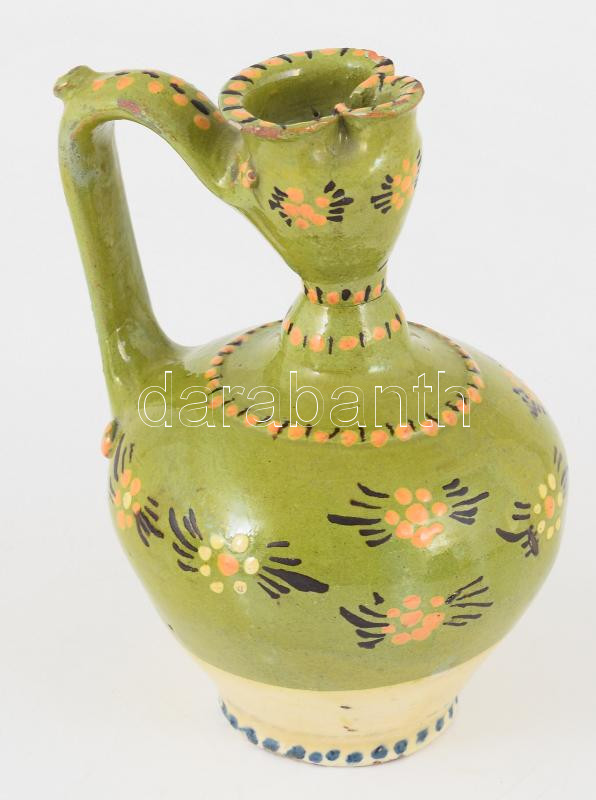 Beschreibung: 1947 Szabó Balázs Mezőtúr vizeskorsó, mázhibákkal, m: 17 cm