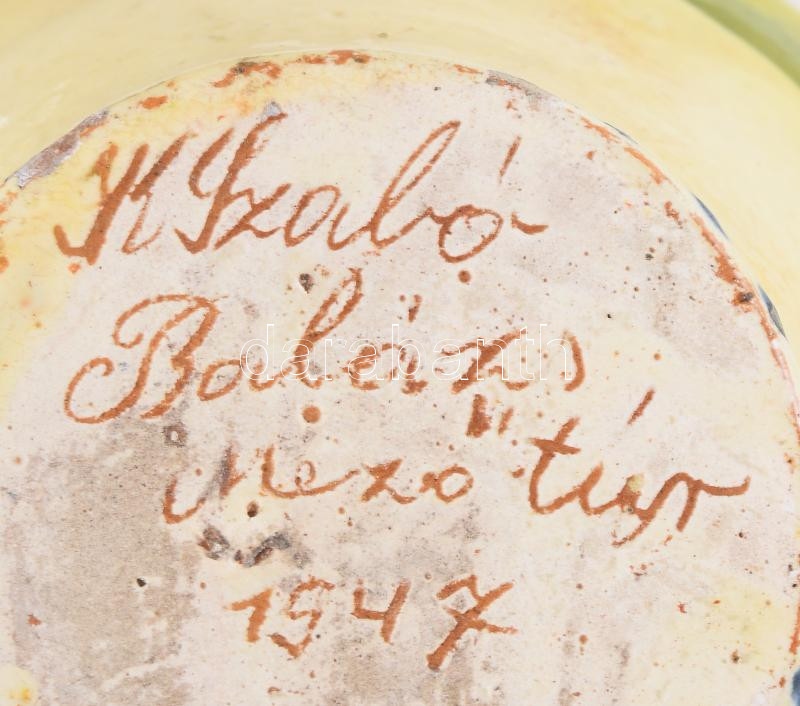 1947 Szabó Balázs Mezőtúr vizeskorsó, mázhibákkal, m: 17 cm https://www.darabanth.com/de/500-Fernauktion/500.0/Porzellan-Keramik-Glass/Keramiken~500001/1947-Szabo-Balazs-Mezotur-vizeskorso-mazhibakkal-m-17-cm~II3404573