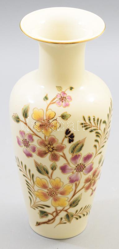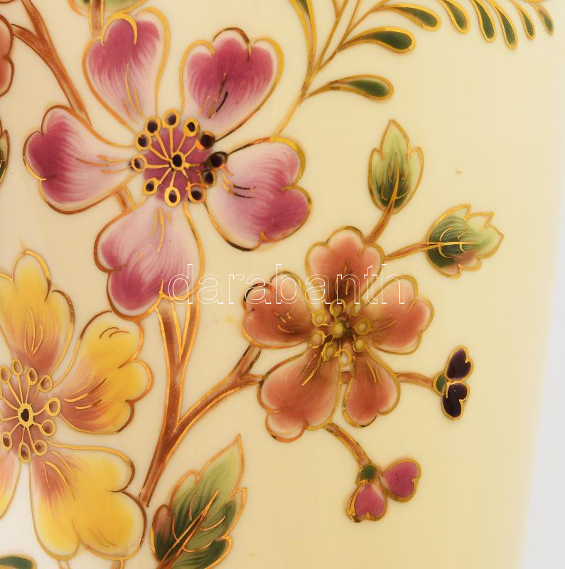 Zsolnay aranykontúrozott virágmintás váza, jelzett, hibátlan, m: 26,5 ... https://www.darabanth.com/de/500-Fernauktion/500.0/Porzellan-Keramik-Glass/Porzellan~500002/Zsolnay-aranykonturozott-viragmintas-vaza-jelzett-hibatlan-m-26-5-cm~II3406124