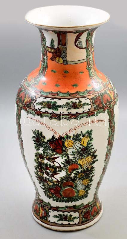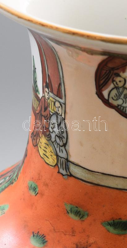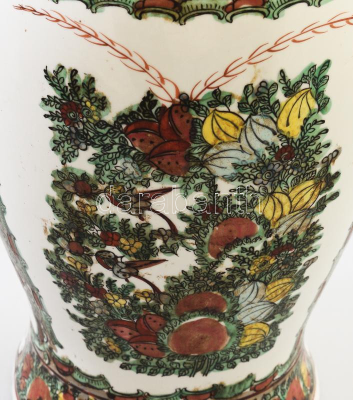 Beschreibung: cca 19. sz. vége, Famille Verte nagyváza, kézzel festett, jelzett: 6 jegyes császári jelölés, kis karcokkal, m: 46 cm