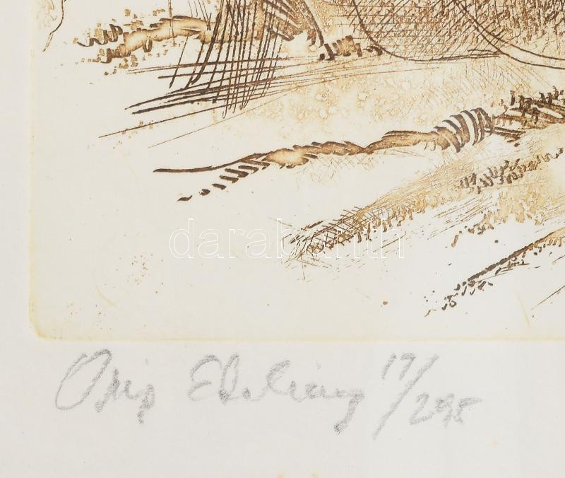 Beschreibung: Almásy László (1926-): Női akt. Rézkarc, papír, jelzett, számozott (17/295), alpszéli apró foltokkal, 19×15 cm