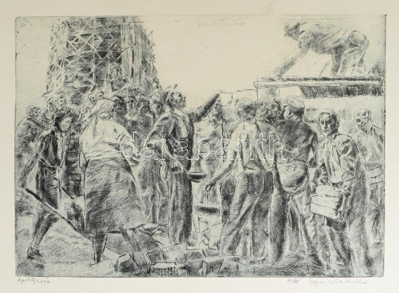 Aszódi Weil Erzsébet (1901-1976): Építkezés. Rézkarc, papír, jelzett, ... https://www.darabanth.com/de/501-Fernauktion/501.0/Gemalde-und-Grafiken/Gemalde-und-Grafiken~10/Aszodi-Weil-Erzsebet-1901-1976-Epitkezes-Rezkarc-papir-jelzett-lap-egyik-lapszel-lyuk~II3402030