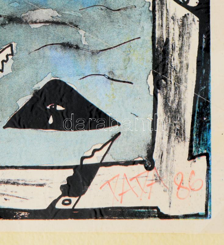 Bada Dada (Bada Tibor, 1963-2006): A Palicsi-tó szörnye, 1986. Ofszet nyomat, képeslap, papír, jelzett, kartonra kasírozva, karton széle kissé foltos, 17×11,5 cm