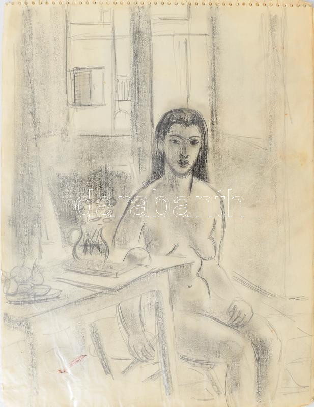 Basch Edit (1895-1980): 3 db rajz (női akt, női portré, férfi portré) vázlatfüzetből. Szén, papír, jelzés nélkül, egyiken olasz ny. felirattal. Feltehetően 1920-as/1930-as évek. 29x23 cm