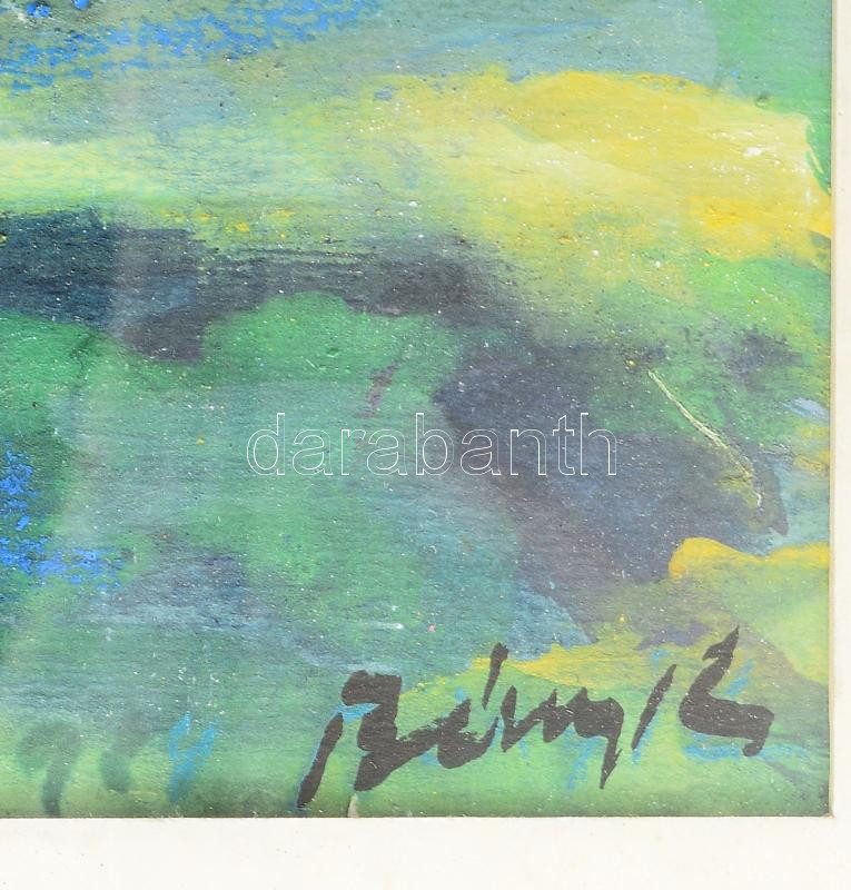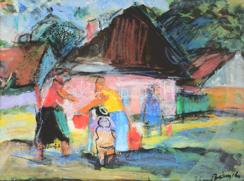 Bényi László (1909-2004): Cigánytelep. Vegyes technika, papír. Jjl.: Bényi L. Hátoldalán Bényi László lánya, Bényi Eszter autográf ajándékozási soraival. 35x46,5 cm. Üvegezett fakeretben,.