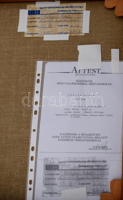 Fényes Adolf (1867-1945): Kiűzetés a paradicsomból. Olaj, vászon, jelzés nélkül. 55x87 cm. Hátoldalán Képzőművészeti Alap címkéjével. Qualitas Galéria attestjével. megemlítve: Oelmacher Anna: Fényes Adolf, 1962, 21. o. Fakeretben. Dublírozott.