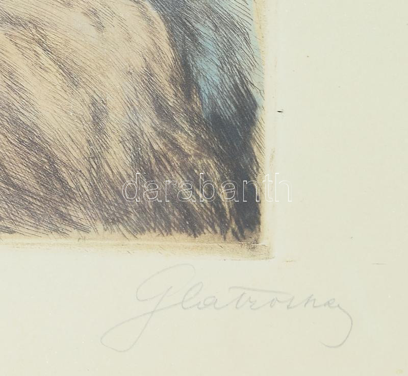 Beschreibung: Glatz Oszkár (1872-1958) - Prihoda István (1891-1956): Betűvetés. Színezett rézkarc, papír. Jelzett (Glatz Oszkár). Üvegezett fakeretben. 35,5x26,5 cm.