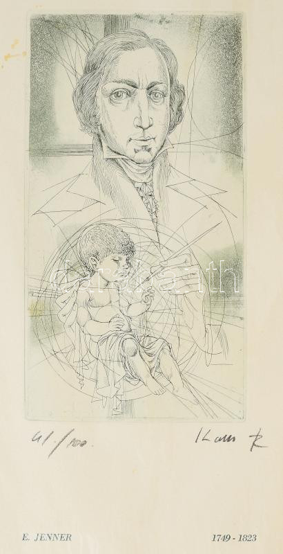 Kass János (1927-2010): Edward Jenner portréja. Rézkarc, papír, jelzet... https://www.darabanth.com/de/501-Fernauktion/501.0/Gemalde-und-Grafiken/Gemalde-und-Grafiken~10/Kass-Janos-1927-2010-Edward-Jenner-portreja-Rezkarc-papir-jelzett-szamozott-41100-19~II3418383
