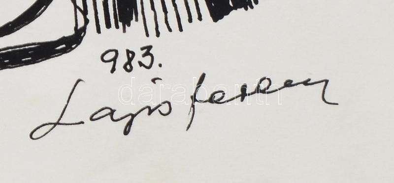 Beschreibung: Lajos Ferenc (1912-1998): Bucsú a székelyeknél, 1983. Tus, papír, jelezve jobbra lent, 37×27,5 cm