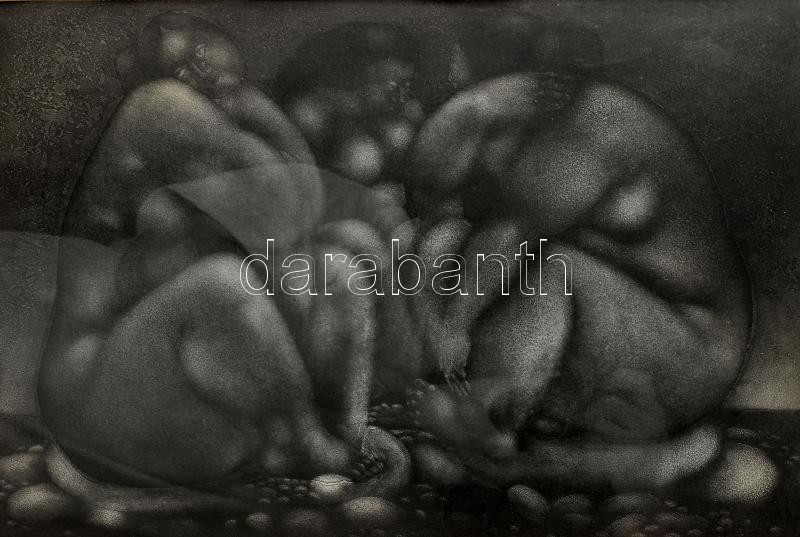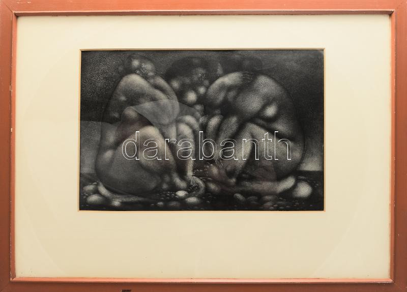 Beschreibung: Tot, Amerigo (1909-1984): Kavicsasszonyok. Rézkarc, mezzotinto, papír, jelzés nélkül, üvegezett keretben, 26×39 cm