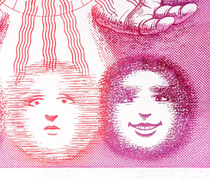 Zsigovics Iván (1958- ): Teremtő. Színes rézkarc, papír, jelzett, szám... https://www.darabanth.com/de/501-Fernauktion/501.0/Gemalde-und-Grafiken/Gemalde-und-Grafiken~10/Zsigovics-Ivan-1958-Teremto-Szines-rezkarc-papir-jelzett-szamozott-38100-lap-sze~II3363274