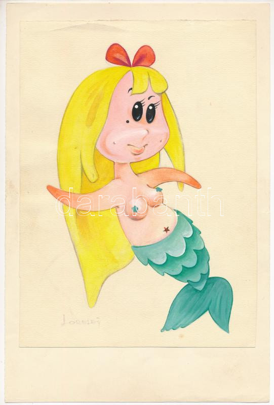 Beschreibung: Jelzés nélkül: Loreley (humoros-karikaturisztikus rajz). Akvarell, ceruza, papír. Papírra kasírozva. 24x17 cm