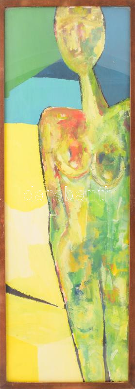 Jelzés nélkül, XX. sz. vége/XXI. sz. eleje: Álló női akt. Olaj, karton. Üvegezett fakeretben. 88x30 cm