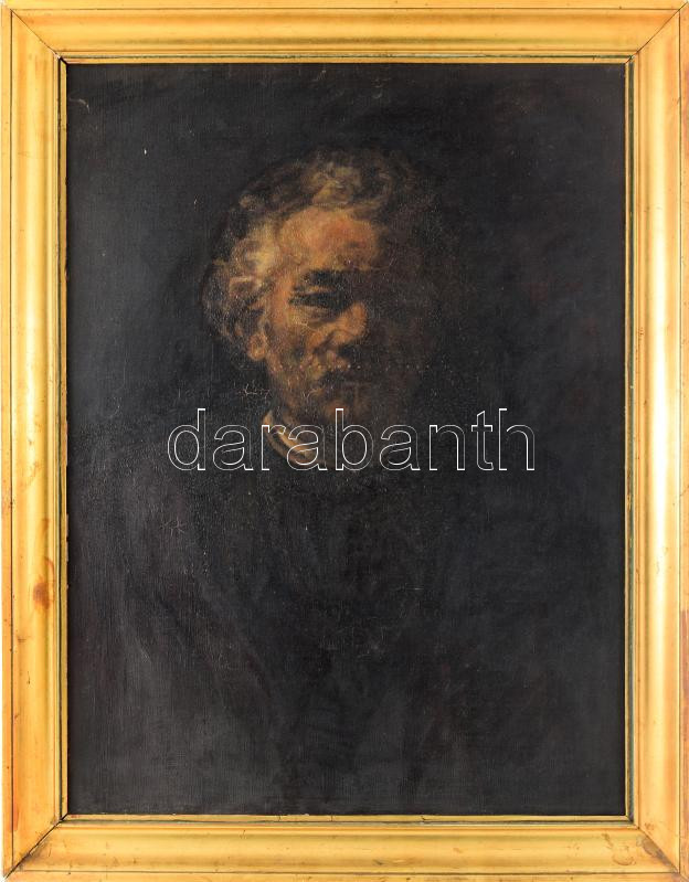 Jelzés nélkül, másolat Rembrandt után: Rembrandt önarcképe. Olaj, vászon. d hátoldalán Musee de Louvre és 1933-as évszám bélyegzővel. Dekoratív, kissé sérült fakeretben. 73x54 cm