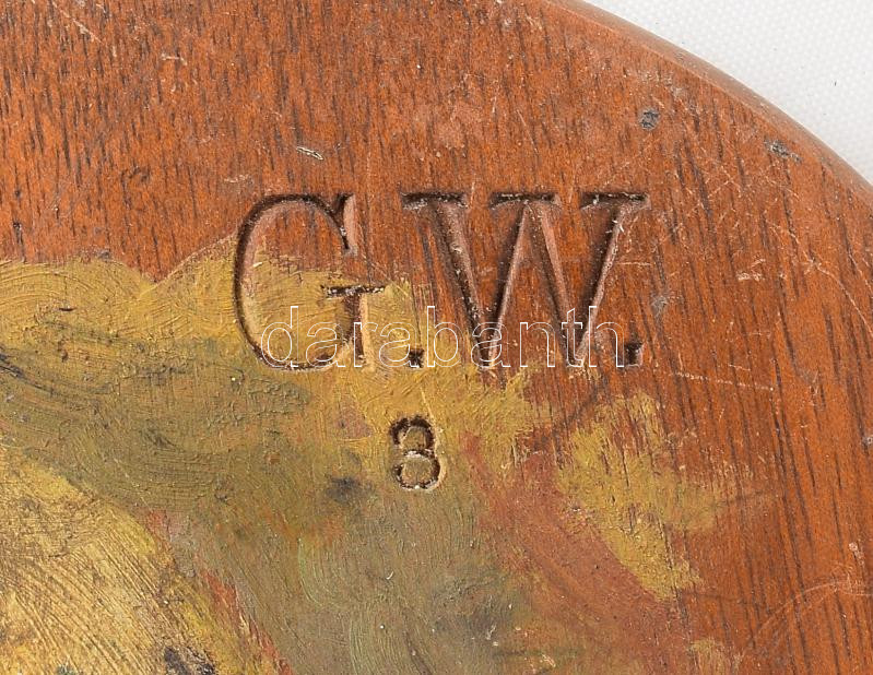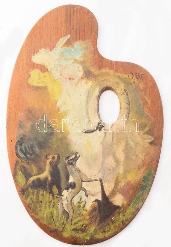 Margit jelzéssel (feltehetően XIX. sz. vége/XX. sz. eleje): Kutyák. Olaj, fa (festőpaletta), 31,5×24 cm