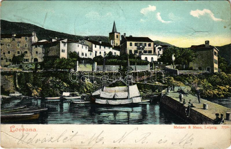 Beschreibung: 1908 Lovran, Laurana, Lovrana; kikötő. A képeslap címzettje Ohmacht Nándor, a zabolai Mikes-uradalom titkára. Mehner & Maas / port (Rb)
